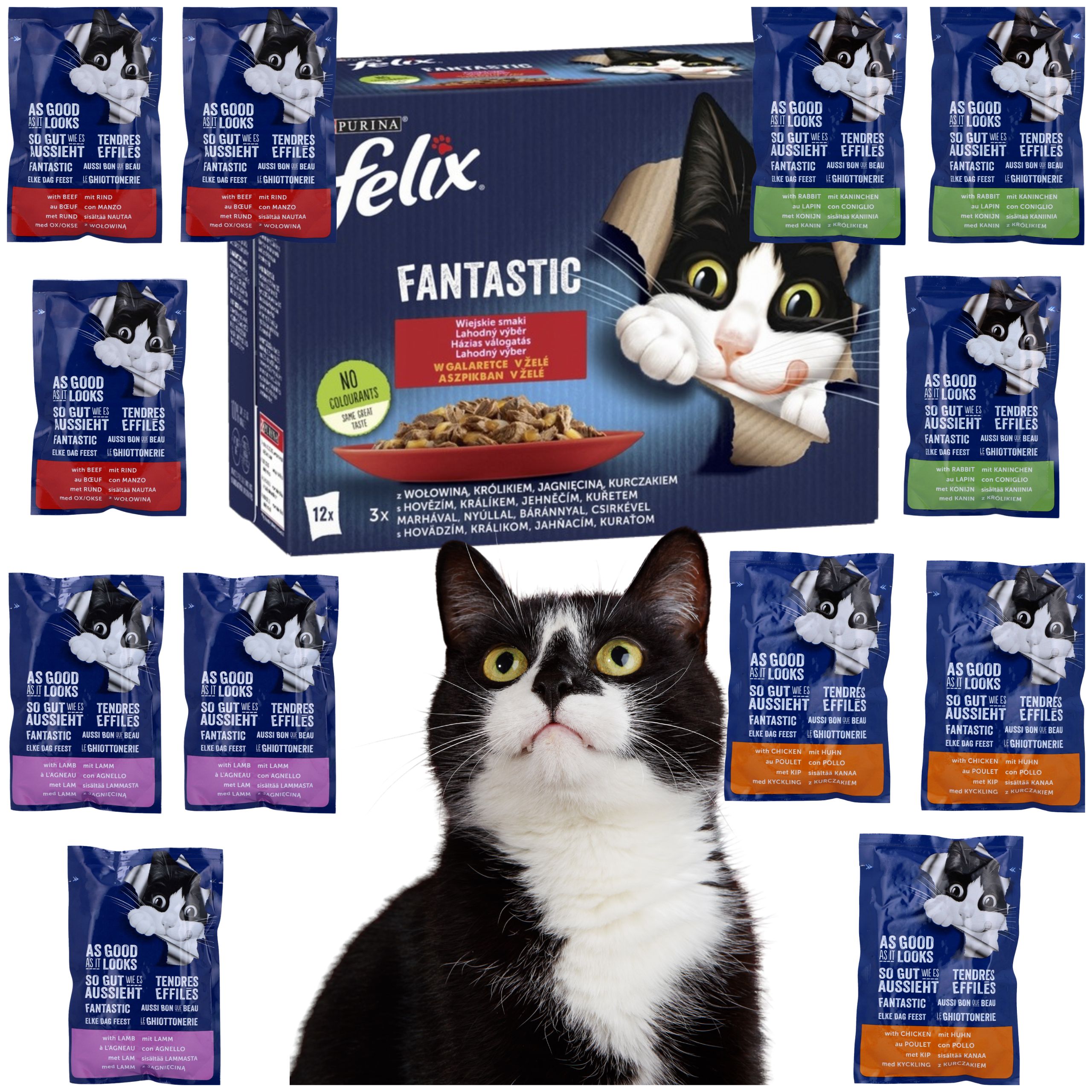 KARMA MOKRA DLA KOTA FELIX FANTASTIC WIEJSKIE SMAKI MIX Z MIĘSEM 12 X 85G