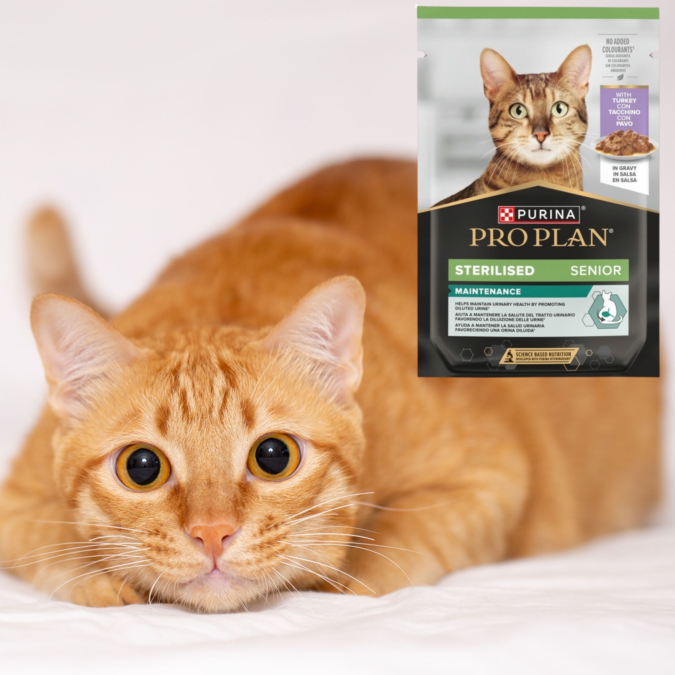 Delikatne kawałki indyka w aromatycznym sosie pomagają utrzymać zdrowie i witalność kociego seniora każdego dnia.
