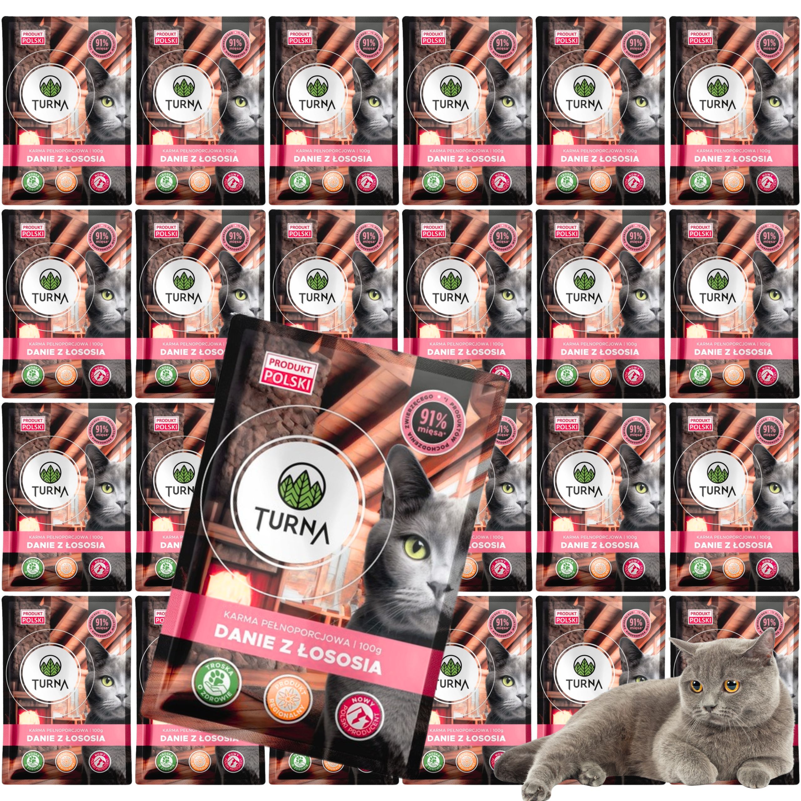 TURNA MOKRA KARMA DLA KOTA Z ŁOSOSIEM 100g – NATURALNA PORCJA ZDROWIA I SMAKU