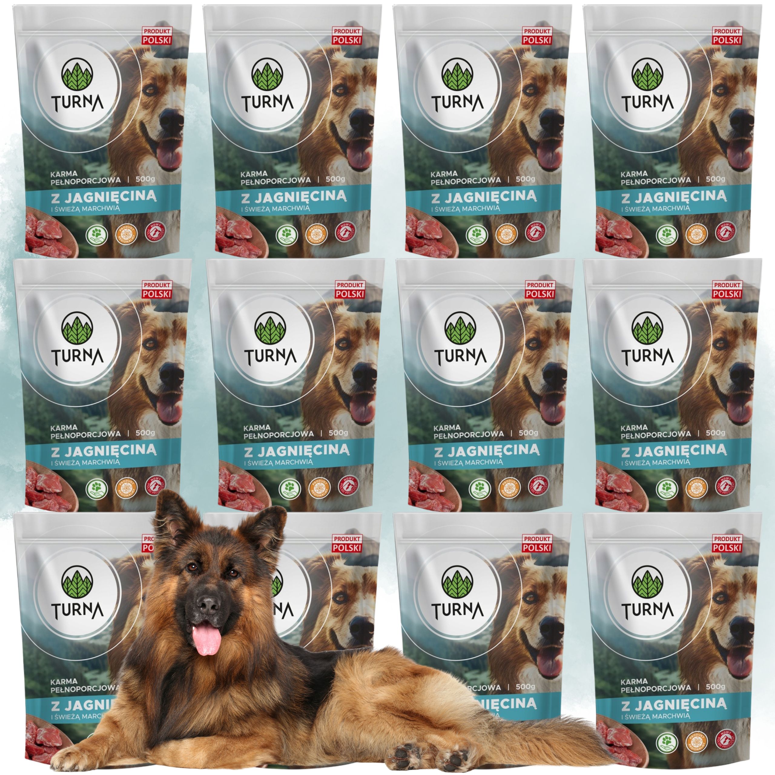 ❤️ZESTAW 12 X SASZETKA Turna Karma Pełnoporcjowa z Jagnięciną i Świeżą Marchwią – DUŻA saszetka 500 g